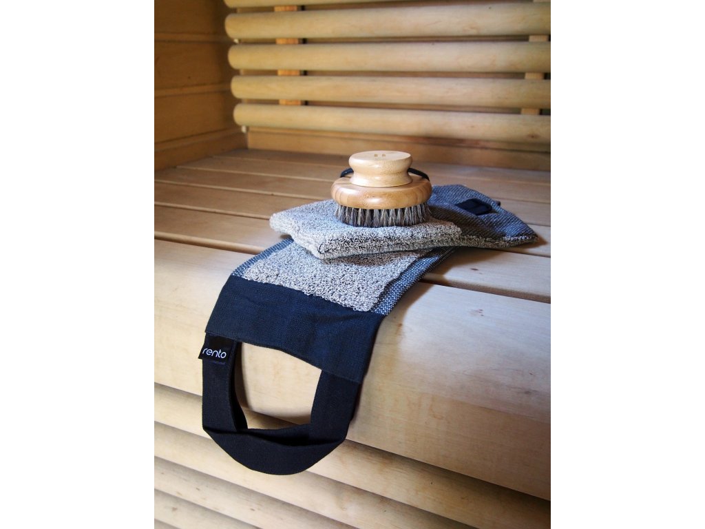 Dlouhá žínka z lněného froté je ideální pro mytí zad a míst, kam běžná žínka nedosáhne. Šedé provedení je praktické a elegantní. Materiál poskytuje jemnou exfoliaci a pomáhá udržet pokožku hladkou a čistou.